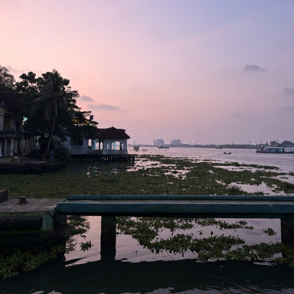 En Kochi exiten dos zonas de interés, alejadas entre sí unos 15 minutos en transporte rodado, pero también asequibles a pie. Nosotros nos alojamos en Fort Kochi, la zona más local, histórica y amurallada. Aunque Fort Kochi ha perdido gran parte de esa muralla, ahora hay un malecón por el que pasear a orillas del mar mientras vemos uno de los atardeceres más espectaculares que podemos imaginar, al abrigo de los pescadores que utilizan sus peculiares redes de pesca chinas, convirtiéndose en la atracción de todos los paseantes.