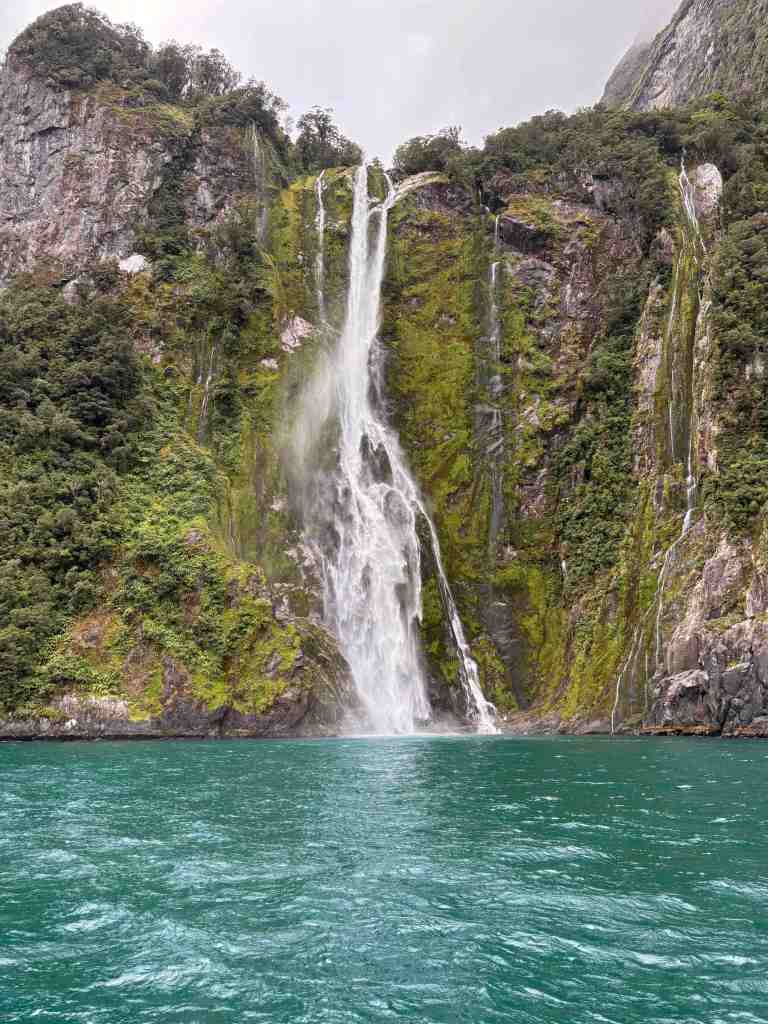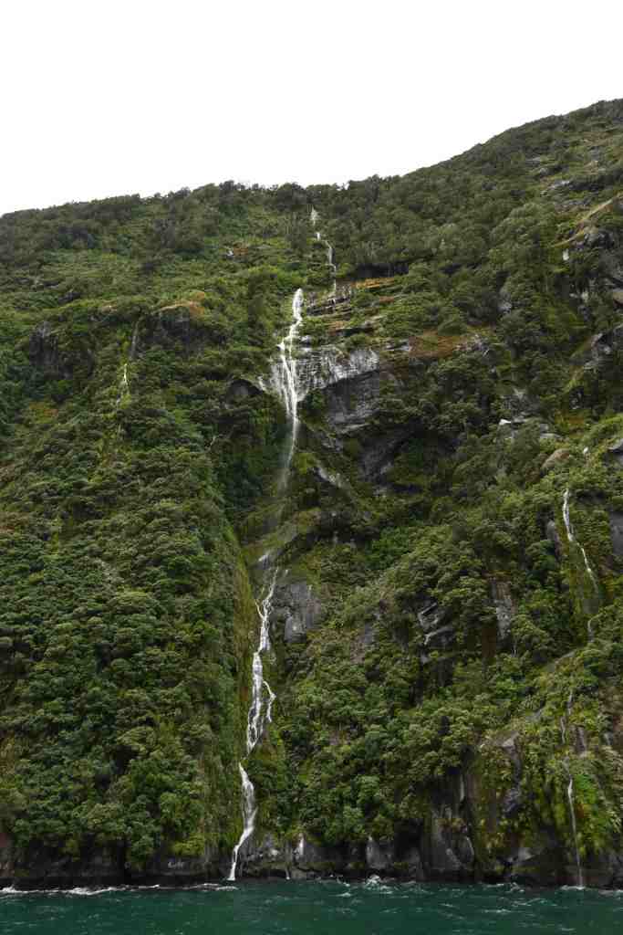 El Milford Sound es el fiordo más impresionante que he visto en mi vida, para mi gusto ni siquiera pueden superarlo los fiordos noruegos, ni la llegada a Islandia en ferry con las paredes de los fiordos completamente cubiertas de nieve… Son hechos diferentes, y en su momento también fueron impresionantes pero aquí lo que lo hace totalmente surrealista son las altísimas paredes entre las que navegamos y los recovecos que forman, imposibilitando la visión del mar hasta que no hemos llegado prácticamente a él, una vez transcurridos los 16 kilómetros de longitud que tiene. Tanto es así que ni el mismísimo James Cook se atrevió a entrar cuando lo vió desde el mar de Tasmania, pues se pensaba que era una bahía simplemente. Esto sumado al clima, pues por la mañana estuvo lloviendo, al llegar aún estaba cubierto, pero al empezar el crucero de última hora de la tarde comenzó a despejarse, abriéndose algunos claros y mostrándonos decenas de cataratas que habían cogido fuerza gracias a la lluvia matutina.