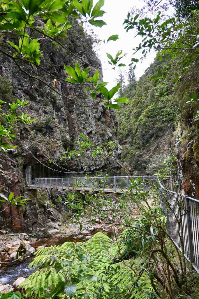 La primera parada que hacemos al salir de Whitianga es en la antigua mina de oro situada en la garganta Karangahake. Está muy cerca de la carretera principal, así que este corto desvío es una buena opción para bajar del coche y dar un paseo en la naturaleza. Tras aparcar, tenemos señalizados un par de caminos, uno de los cuales puede hacerse en bicicleta, pero no hay un lugar que alquile bicicletas, así que nos decidimos a hacer el camino llamado de las ventanas. Este camino tiene aproximadamente una hora y media de duración y es un paseo entre vegetación y ruinas que nos permite conocer más acerca de la historia del oro en este país, que tanto marcó su desarrollo.
