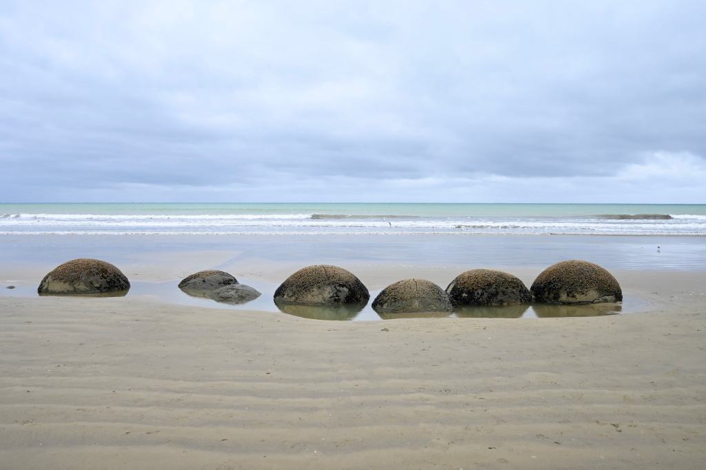 Así que ponemos rumbo a la segunda parada, la playa de los Moeraki Boulders, curiosa por presentar enormes formaciones rocosas de forma completamente esférica que algunos afirman ser huevos de dinosaurio fosilizados, mientras otros se atreven a decir que son huevos de Aliens que aún no han eclosionado. En cualquier caso, estas formaciones son extrañas, y está bien hacer la visita si estamos por la zona y coincide con la marea baja, pues de otro modo, no podremos verlas.