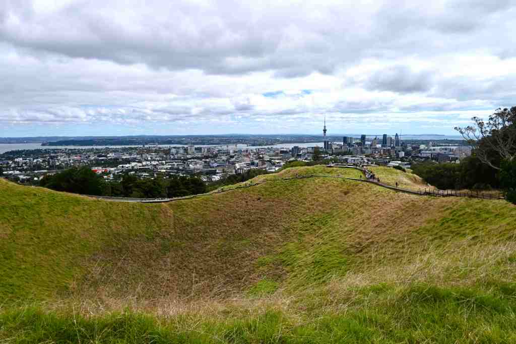 Al salir del aeropuerto y tras recoger nuestro coche de alquiler, lo primero que hacemos es dirigirnos a Monte Edén, que está en el camino hacia el centro de la ciudad. Allí aparcamos el coche y subimos caminando unos 15 minutos, hasta la parte de arriba del cráter, desde donde podemos ver el agujero que forma el mismo. A lo lejos la ciudad Auckland nos abraza en 360 grados. Es una parada que merece la pena hacer a nuestra llegada para poder empezar a tener una idea básica de dónde nos encontramos y cómo es la fisonomía de la ciudad.