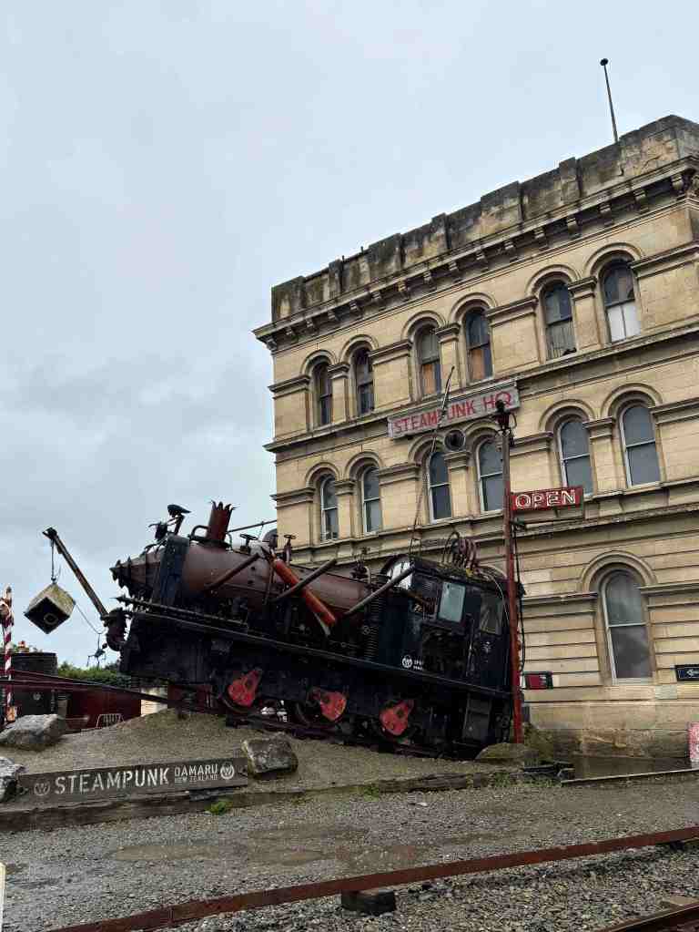 Nuestra siguiente parada el es pueblo de Oamaru, famoso por su arquitectura victoriana en los edificios cercanos al antiguo puerto, y los tinglados que hoy en día albergan cálidas cafeterías, estudios de arte y tiendas de artesanía. Además, la pequeña ciudad se proclama capital mundial del SteamPunk, un género literario de ciencia ficción que debutó el siglo pasado, del que podemos aprender más, si estamos interesados, visitando su museo. La otra gran atracción de Oamaru, es la colonia de pingüinos azules que cada atardecer llega a su hogar en la playa del pueblo, y que podremos ver previo pago a la compañía que gestiona el acceso al lugar.