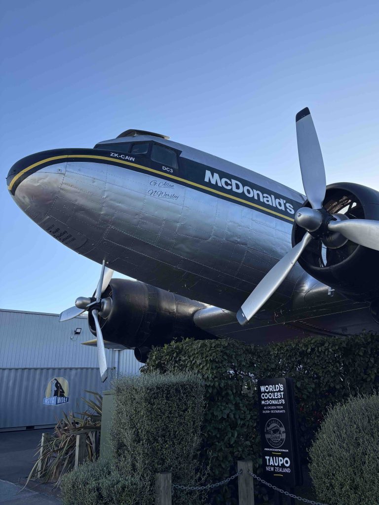 Tras comer nuestro pie de rigor del día, al llegar a Tapo y deshacernos del coche, decidimos visitar el Museo local, al cual merece la pena dedicarle al menos una hora para conocer un poco más de la cultura maorí y de cómo Taupo llego a ser la ciudad que es ahora. Después de esto damos un paseo por la orilla del lago, vemos como decenas de personas hacen sus apuestas para jugar al hoyo en uno, un derivado del golf donde se sitúa una plataforma en el lago a una gran distancia de la orilla, y desde ahí hacen sus golpes para intentar acertar al hoyo en uno y llevarse el premio de 15 millones de euros… difícil pero entretenido. También tomamos nuestra cerveza de rigor acompañada de una cena, en un pueblo donde tenemos para elegir el tipo de comida que queramos, incluso podremos comer en un avión dentro de un McDonalds, completamente loco…
