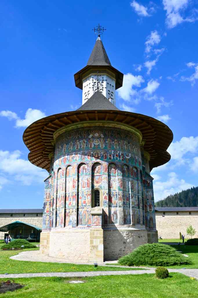 La región de Bucovina es famosa por los monasterios pintados de estilo bizantino. Cada uno de ellos se encuentra dentro de un recinto amurallado que en ocasiones también alberga algunas pequeñas edificaciones en las que viven las monjas. Aunque hay muchos, nosotros pretendimos visitar cinco monasterios pintados de los que le dan la fama a la región: Moldovita, Sucevita, Arbore, Humor y Voronet. Cada uno de ellos está asociado a un color, que es el que predomina, y narran diferentes pasajes bíblicos en sus paredes, aunque ante en cada uno también destaca un pasaje diferente.
