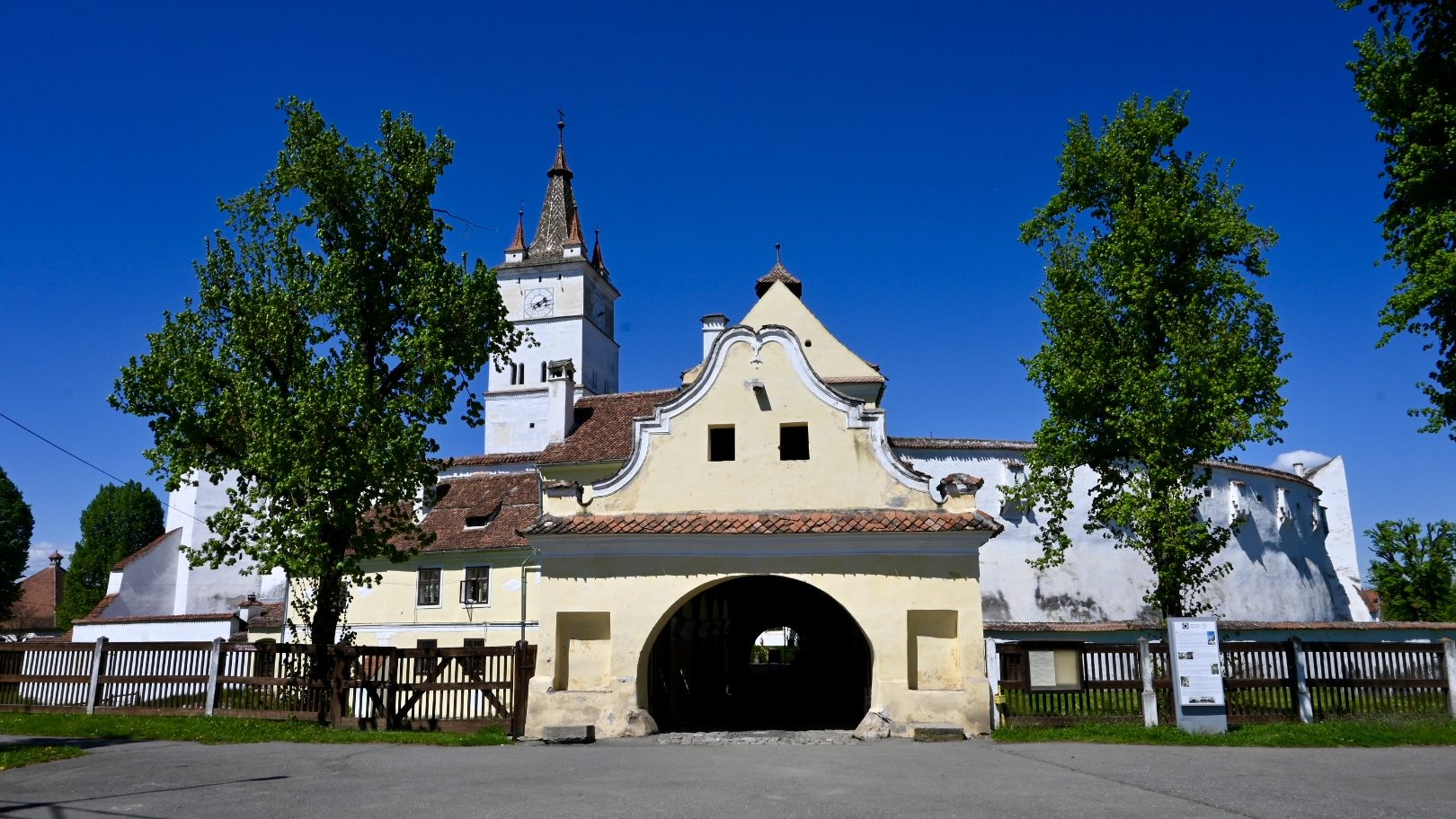 Después ponemos rumbo a la cercana iglesia fortificada de Harman, que en este caso sólo veremos desde fuera, con su imponente campanario alzándose más de 50 metros desde el suelo.