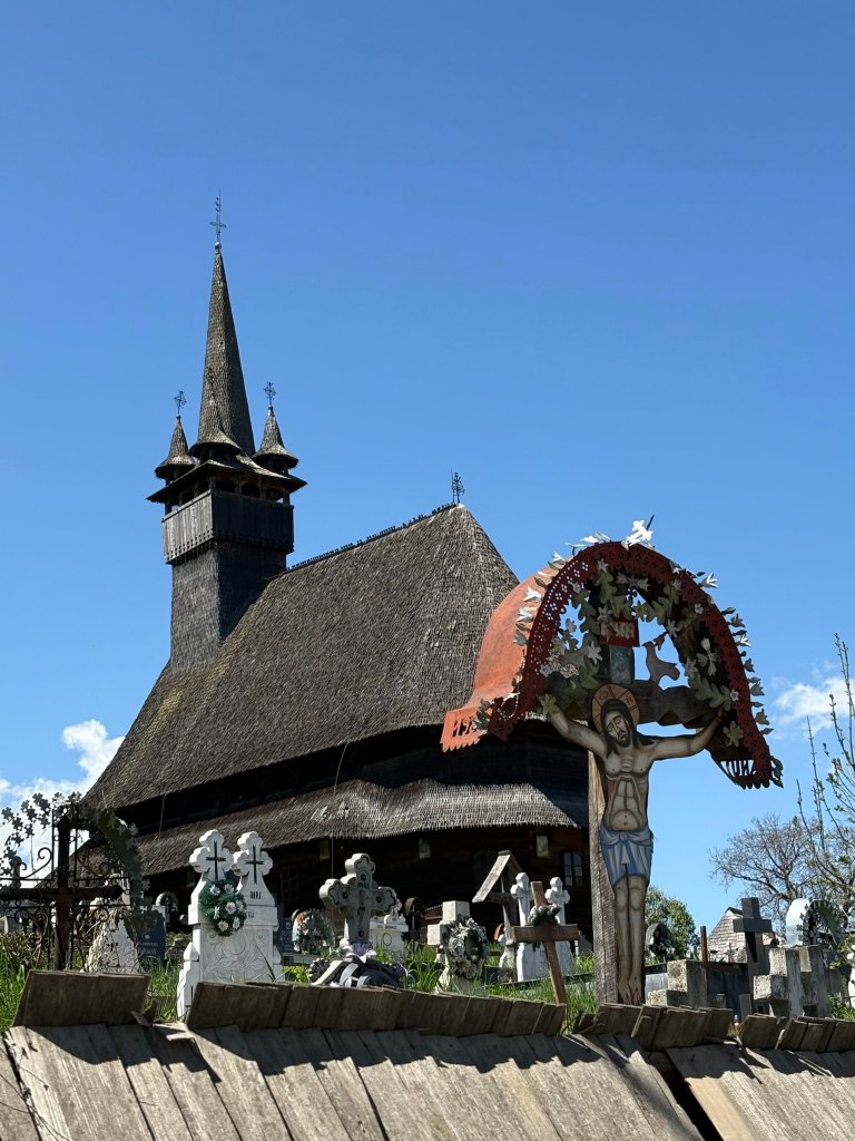 Después vamos a Budesti, donde la iglesia no llama tanto la atención al estar en el centro de un pueblo más grande y sin rodearse del paisaje verde y calmado que envuelven a las dos anteriores. Esta es diferente, menos alta y parece más basta, pero no por ello menos bonita.